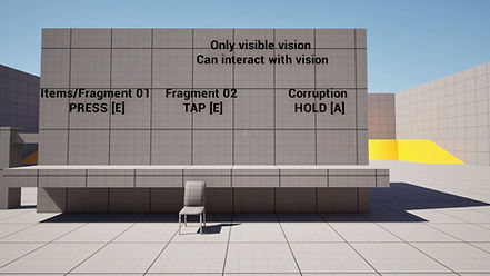 I decided to create several MasterItems containing the collision surface, the static mesh, and the associated widget to keep things flexible in use. Those that require vision have assigned tags that allow them to become visible when vision is activated.
